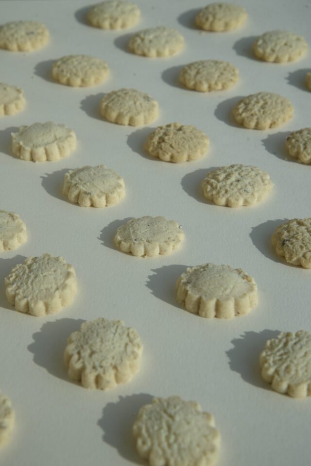 La lavanda porta una sfumatura floreale sottile, che accompagna la fragranza del biscotto con discrezione.